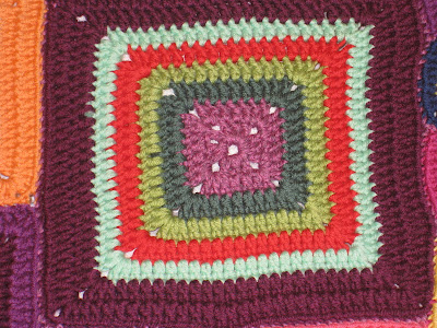 La comencé en el mes de enero de este año y pase parte del invierno haciendo los cuadraditos. Al finalizar el verano hice por fin el montaje y el borde del plaid.